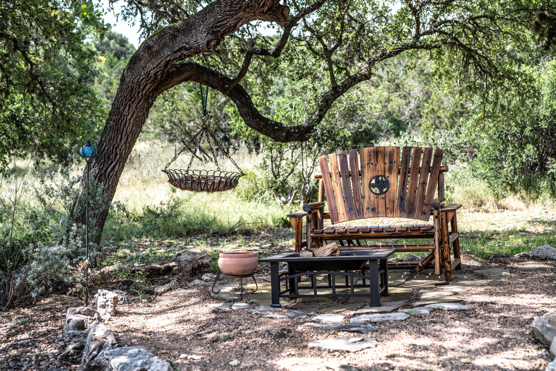 Century Oak Casita Rentals features luxurious accommodations setting under a 200-year-old Oak tree and on top of a hill with a fantastic view of the Texas Hill Country. Two beautifully decorated custom built private Casitas which can be rented separately, the Century Oak House and the Lookout House, offer all the amenities you would expect including bedrooms, bathrooms, kitchens, living rooms, dining areas, coffee bars, large HD TVs, refrigerators, microwaves along with tranquil outdoor settings of covered patios, chimineas, swinging chairs and outdoor cooking grills. The Century Oak house with the two detached Casitas provides sleeping accommodations for 14 guests and the Lookout House provides sleeping for 10 guests to fulfill all your needs for any event.
